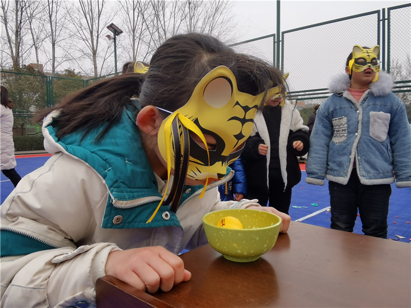 活動(dòng)現(xiàn)場(chǎng),一條條燈謎掛在繩上供大家思考,猜出謎底的“虎娃”開心地把燈謎撕下來找工作人員兌換獎(jiǎng)品,玩得不亦樂乎。同時(shí),元宵節(jié)的傳統(tǒng)食物元宵也出現(xiàn)在活動(dòng)中,社工、志愿者設(shè)置的團(tuán)團(tuán)圓圓(歡樂夾元宵)游戲,用乒乓球代替元宵,讓“虎娃”們進(jìn)行大比拼,大家從剛開始的不熟悉變?yōu)楹髞碓絹碓侥?,現(xiàn)場(chǎng)其樂融融。隨后,聲聲報(bào)福(踩氣球)游戲?qū)⒒顒?dòng)推向高潮。