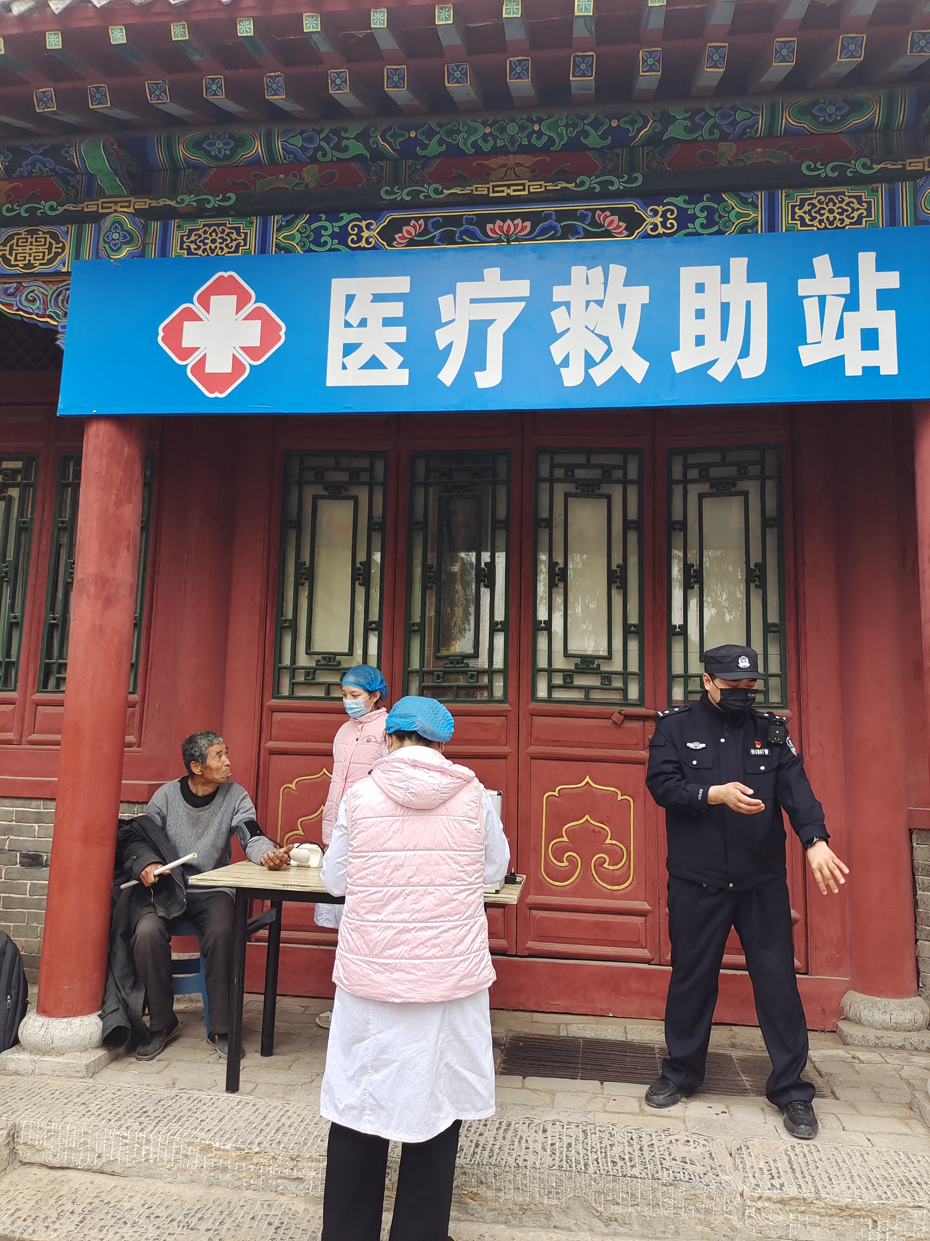 量血壓的姑娘叫蘇圓圓,據(jù)她介紹,全淮陽20多家醫(yī)院都派人在太昊陵各處設(shè)置“醫(yī)療救助站”,游客有任何不舒服可就近詢問觀察,各站都配有應(yīng)急藥箱,如有需要免費(fèi)使用?!斑@段時(shí)間人流量大,大家一定要遵守各項(xiàng)安全措施,避免意外發(fā)生?!碧K圓圓說。