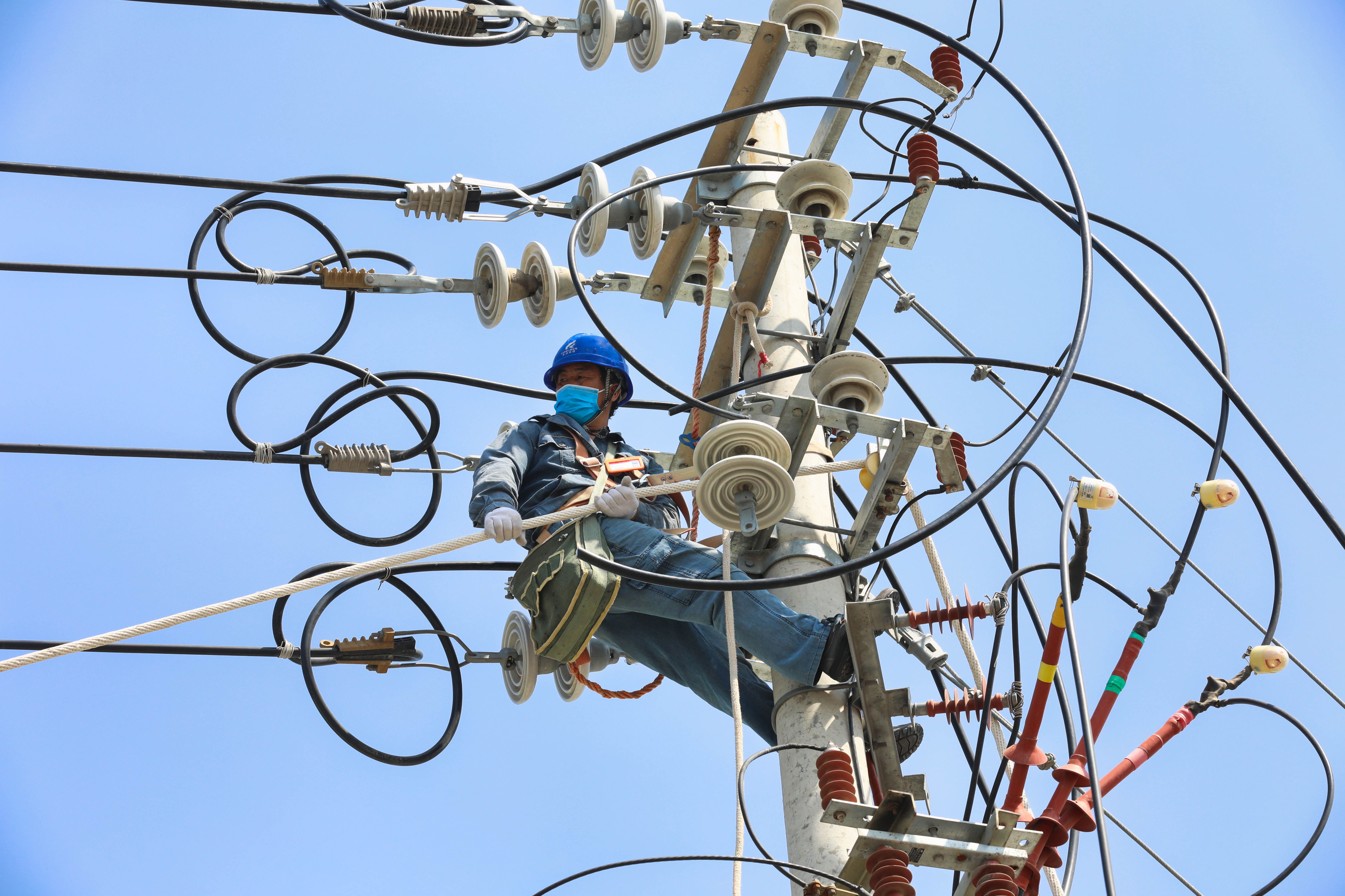 加裝故障指示器,進行缺陷消除、絕緣恢復(fù)、導(dǎo)線更換、清理樹障等,桿塔上、線路間,隨處可見施工人員緊張忙碌的身影。