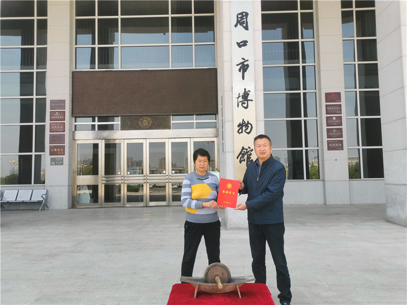 4月17日上午,城鄉(xiāng)一體化示范區(qū)文昌辦事處萬莊村村民葉桂蓮將爺爺傳給她的中藥碾子捐給市博物館。