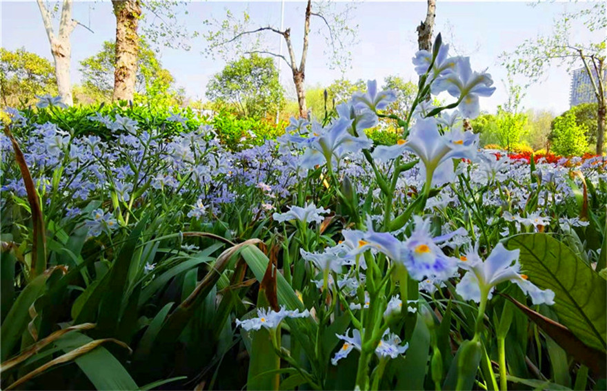 近日,濱河公園的蝴蝶花開了,微風(fēng)輕撫,如千百只彩蝶在綠葉叢中蹁躚起舞,典雅清麗,清香四溢。②10