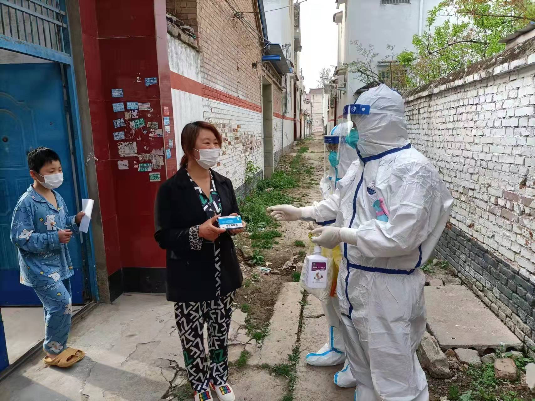 到達(dá)太康后,王群禮被分到了城關(guān)回族鎮(zhèn)封控區(qū)進(jìn)行入戶核酸采集,當(dāng)時(shí)的他也很緊張,認(rèn)真地穿防護(hù)服,熟記采集核酸的每一個(gè)動(dòng)作要領(lǐng),然后投身抗疫最前線。在入戶采樣的時(shí)候,王群禮發(fā)現(xiàn)有一個(gè)小女孩獨(dú)自在家,她每次聽到敲門聲都是先開一點(diǎn)縫,悄悄觀察外面,當(dāng)看到是防疫人員時(shí),才慢慢打開門?!拔铱梢钥闯鏊目謶趾蜔o助,不知道她晚上怕不怕,會(huì)不會(huì)做飯,問她怎么吃飯,她也不說話,我心里很不是滋味?!睆哪翘扉_始,王群禮每次入戶采核酸的時(shí)候,就幫她帶點(diǎn)吃的,王群禮會(huì)把他的早餐留給她,還把自己的水果、零食也都送給她。