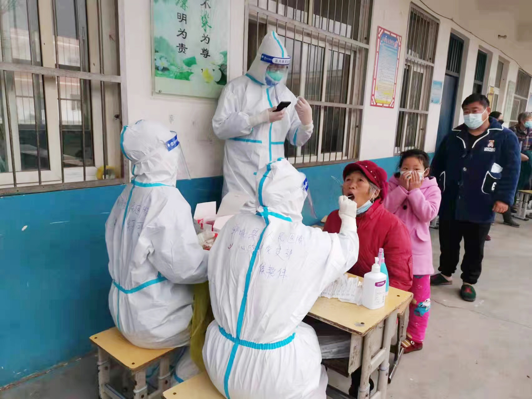 2022年3月23日,太康疫情形勢嚴(yán)峻,為響應(yīng)縣委、縣政府號召,醫(yī)院火速征集人員前去支援。她毫不猶豫主動申請前去支援。在太康支援期間,她每天入戶為封控區(qū)村民采集核酸,從沒有抱怨苦和累。在采集任務(wù)結(jié)束后,作為第八小組組長,侯艷偉還帶領(lǐng)著她的組員利用短暫的休息時間,為當(dāng)?shù)氐拇迕窦皩W(xué)生培訓(xùn)七步洗手法,并教給他們一些抗疫小知識,受到了當(dāng)?shù)厝罕姷囊恢驴滟潯?/p>
