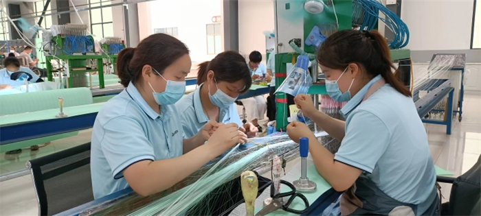 圍繞百億級裝備制造業(yè)產(chǎn)業(yè)集群發(fā)展,提升裝備制造業(yè)科技研發(fā)創(chuàng)新能力。以加快晶鑫科技上市為引領(lǐng),推動傳統(tǒng)企業(yè)整體轉(zhuǎn)型升級。晶鑫科技產(chǎn)業(yè)園內(nèi)綠意盎然,高大寬敞的廠房內(nèi)工人們在各自崗位上有條不紊地忙碌著。拉絲車間,一臺大型編織機械靜靜地運轉(zhuǎn)。機械的一頭,只有一名技術(shù)人員在操控臺上注視著屏幕。工廠負責人說,這是剛安裝調(diào)試不久的一臺進口機器,自動化程度和生產(chǎn)效率特別高,全國也沒有幾臺。編織車間,來自卞路口鄉(xiāng)董營行政村的馬杰正在熟練地操作著一臺編織機。晶鑫科技辦公室工作人員李文玲說,那臺機器也是進口設(shè)備,技術(shù)含量很高,只有業(yè)務(wù)精湛的工人才能操作。馬杰笑著說,由于她操作的機器先進、技術(shù)要求高,工資也比一般人員要高出許多。來自北城街道辦事處的編制工周福榮,按計件每月也能拿到6000元左右的工資。晶鑫科技負責人說,由于疫情防控原因,部分外銷產(chǎn)品出口受到影響,但他們的產(chǎn)品在市場上仍是供不應(yīng)求。