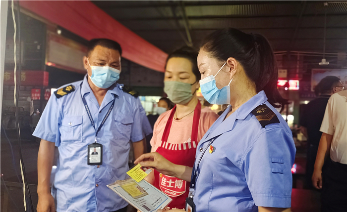 與此同時,項(xiàng)城市市場監(jiān)督管理局工作人員不定期前來查驗(yàn)從業(yè)人員健康證,攤點(diǎn)證,確保攤主規(guī)范經(jīng)營。項(xiàng)城市城管局工作人員每隔兩天就會對攤主液化氣罐安全性能進(jìn)行檢查,全面消除夏季液化氣使用安全隱患。經(jīng)過多個部門通力合作,全面助推了項(xiàng)城“夜經(jīng)濟(jì)”安全、有序發(fā)展。