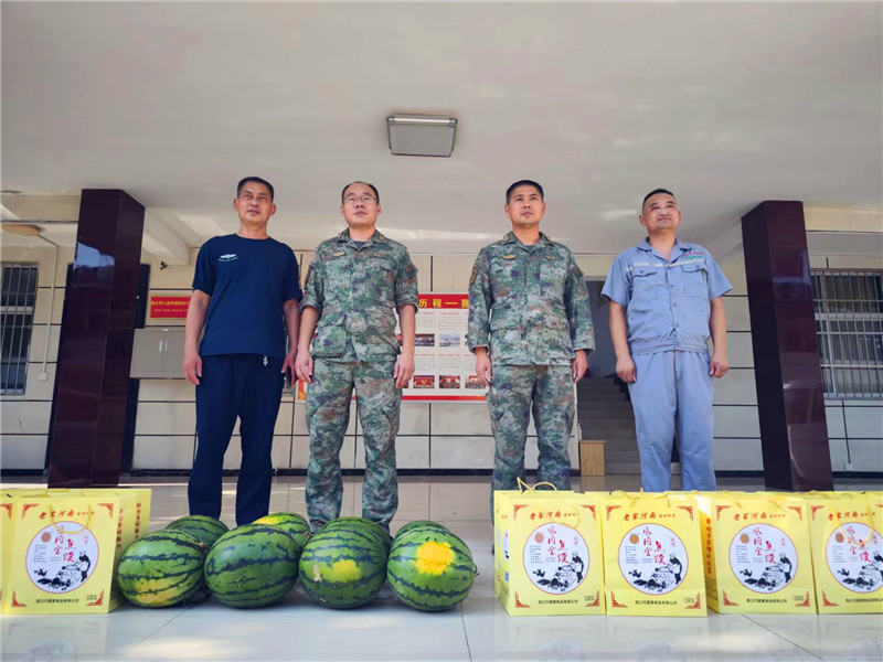 立秋過后,室外溫度依然高達39攝氏度,人們都躲在室內(nèi)開著空調(diào)或吹著風(fēng)扇享受著清涼。此時,淮陽區(qū)人武部大院門口,一中年男子把車上所裝的“淮寶牌”焦饃等慰問品卸下后,徑直走進區(qū)人武部政委劉鋒辦公室。