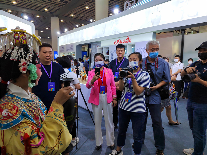 中國非物質(zhì)文化遺產(chǎn)博覽會,每兩年舉辦一屆,是非遺領(lǐng)域的全國性重要品牌活動,已成為展示非遺保護成果、宣傳非遺保護理念、引領(lǐng)非遺保護工作的重要平臺。本屆非物質(zhì)文化遺產(chǎn)博覽會為期5天,河南省有16個非遺項目、4個非遺美食企業(yè)參展,布置在文化底蘊深厚的“行走河南·讀懂中國”展區(qū)?;搓柡谔铡⒀錾夭侍?、唐三彩、魯山窯、汝瓷、鈞瓷、登封窯、當陽峪絞胎瓷、澄泥硯、??h泥咕咕燒制技藝在展廳一一亮相?;搓柡谔諢萍妓囀〖墏鞒腥藦堓x攜帶的部分作品以大氣、精美的文化底蘊深深吸引著人們觀賞,各派非遺戲曲傳人也紛紛捧起他的黑陶作品展示中原古老的黑陶藝術(shù)文化。②15