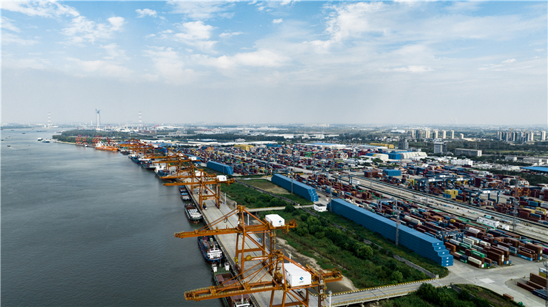 曹紅軍介紹,南京港主要從事集裝箱、油品液化、散雜貨、汽車滾裝等重點(diǎn)貨種港口裝卸、倉儲(chǔ)業(yè)務(wù),現(xiàn)有龍?zhí)?、新生圩、儀征和七壩4個(gè)主要港區(qū),最大靠泊能力8萬噸海輪,擁有至美國、歐洲、東南亞、日本等幾十條國際航線。龍集公司作為南京集裝箱物流運(yùn)輸?shù)闹匾ǖ溃劢怪髫?zé)主業(yè),增強(qiáng)服務(wù)區(qū)域發(fā)展能力,助力南京“樞紐城市國際門戶”“港口型(生產(chǎn)服務(wù)型)國家物流樞紐”建設(shè),彰顯南京強(qiáng)有力的經(jīng)濟(jì)脈動(dòng)。