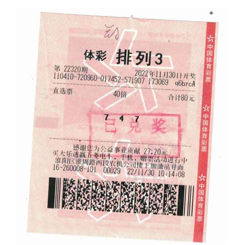 體彩排列3游戲作為每天一期,天天開獎的小盤游戲,以號碼少、玩法簡單、固定獎金等特點受到廣大購彩者的青睞,自上市以來“圈粉”無數。11月30日,排列3第22320期開出“7、4、7”,周口淮陽一名購彩者收獲“排列3”40倍直選獎,獎金達41600元。