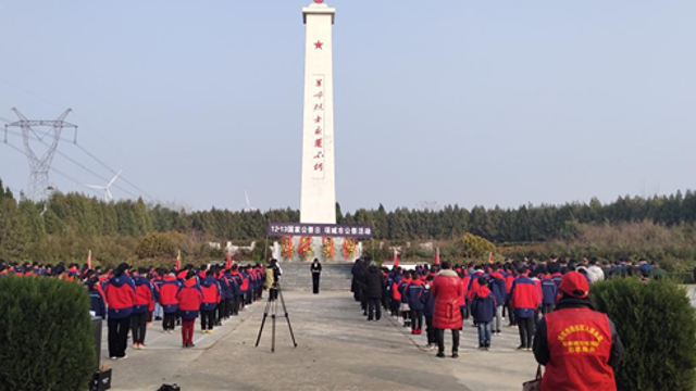 12月13日,項城市教體局、項城市退役軍人事務局在項城市烈士陵園舉行第八個南京大屠殺死難者國家公祭日活動。轉業(yè)士官、學生代表等300余人參加活動。