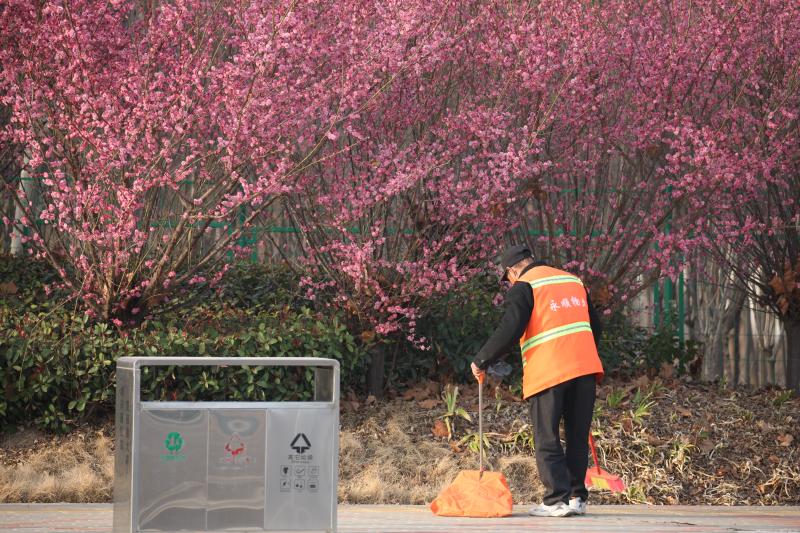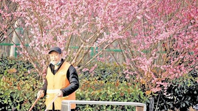 • ?3月11日,一名環(huán)衛(wèi)工人在中心城區(qū)光明路旁清掃飄落的花瓣。連日來,隨著氣溫逐漸升高,周口市中心城區(qū)路旁、湖邊、花園里的花競相綻放,為周口全力營造宜居、宜業(yè)、宜游城市增添了靚麗色彩。