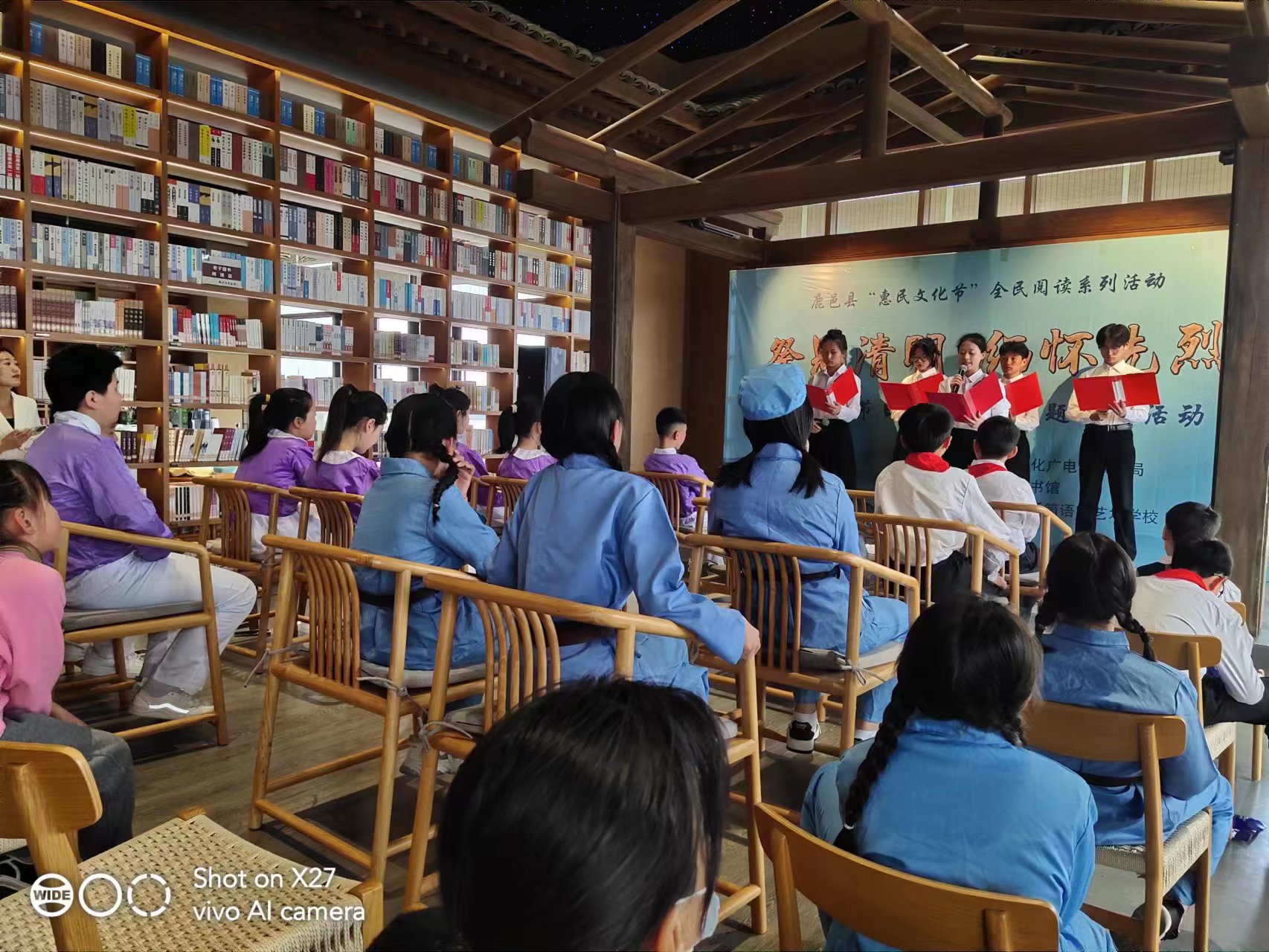 活動由該縣文化廣電和旅游局主辦,縣圖書館承辦,旨在緬懷追憶革命先烈英雄事跡,持續(xù)深化“惠民文化節(jié)”全民閱讀系列活動,向青少年學生普及清明節(jié)文化知識。當日,在該縣圖書館三樓,縣圖書館工作人員講述全縣部分革命先烈英雄事跡和悲壯故事;縣文化廣電和旅游局工作人員講解清明節(jié)由來、清明節(jié)習俗、清明節(jié)為什么要文明祭祀、清明節(jié)為什么要祭祀和掃墓等知識;身著“小八路軍裝”的青少年學生依次登臺,聲情并茂地朗誦《中國人清明節(jié)》《清明的雨》《我愛你中國》《鄉(xiāng)愁》《清明詩詞》《不朽》《青松禮贊》《穿越時空的對話》等經(jīng)典詩詞,表達對革命先烈的無限崇敬和緬懷。
