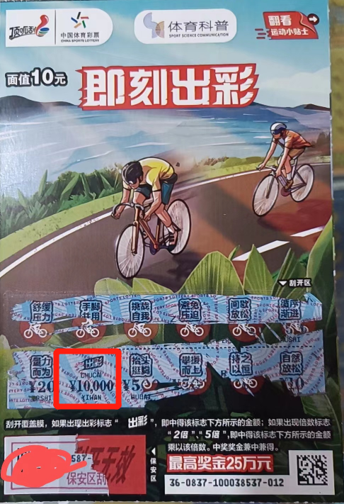 幸運兒刮“即刻出彩”喜中10000元!