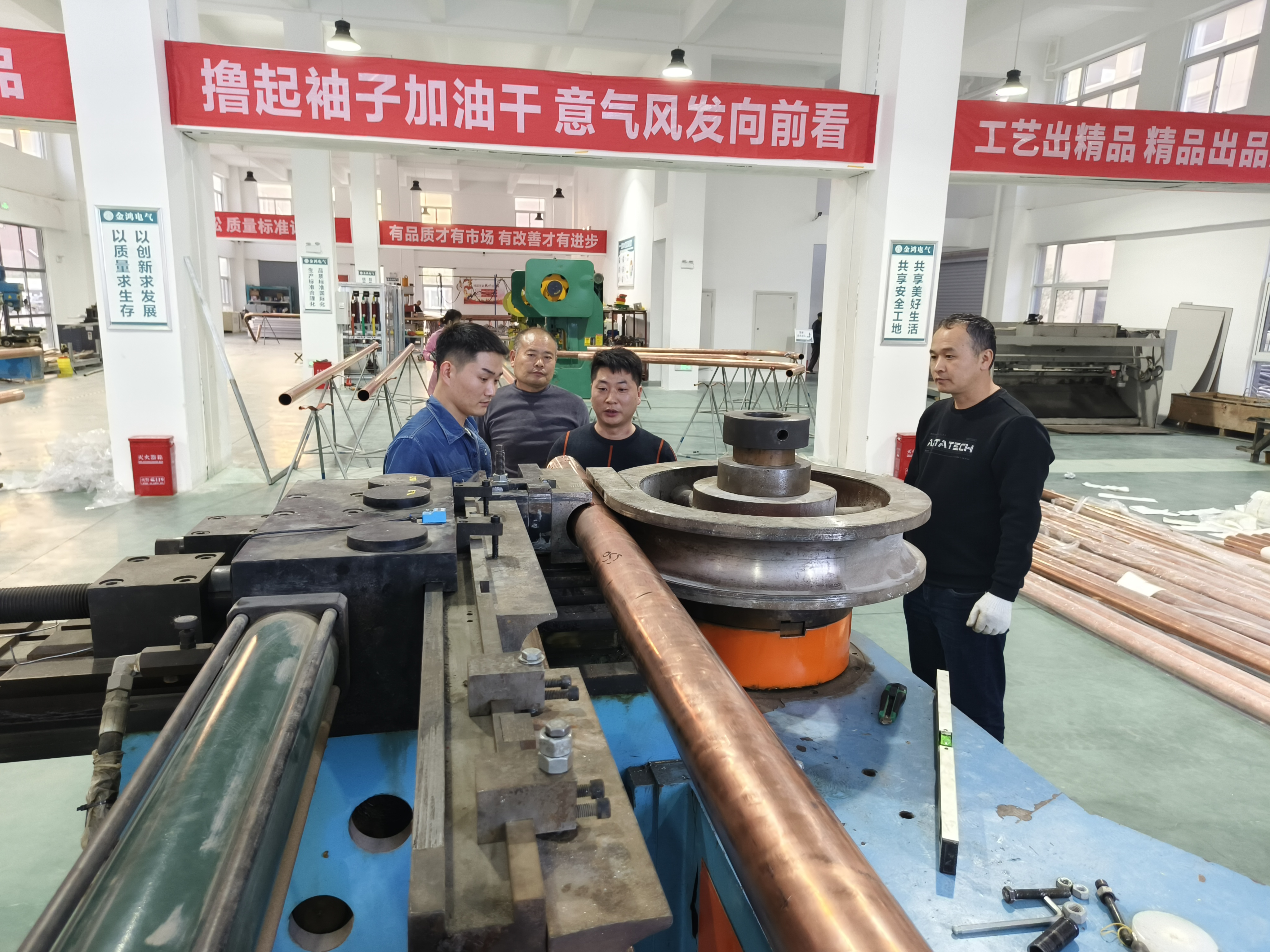 10月26日21時,臨港開發(fā)區(qū)中興新業(yè)港產(chǎn)業(yè)園內(nèi),河南金鴻電氣有限公司(以下簡稱金鴻電氣)生產(chǎn)車間燈光明亮,十多位技術(shù)工人加班加點,趕制重慶鋼廠訂購的一批絕緣銅管母線,11月初,這筆產(chǎn)品必須完成、送到。金鴻電氣總經(jīng)理苑福來說:“今年工廠邊建設(shè)邊生產(chǎn),預(yù)計年產(chǎn)值能達到1億元,為明年產(chǎn)能擴張打下基礎(chǔ)?!?/span>