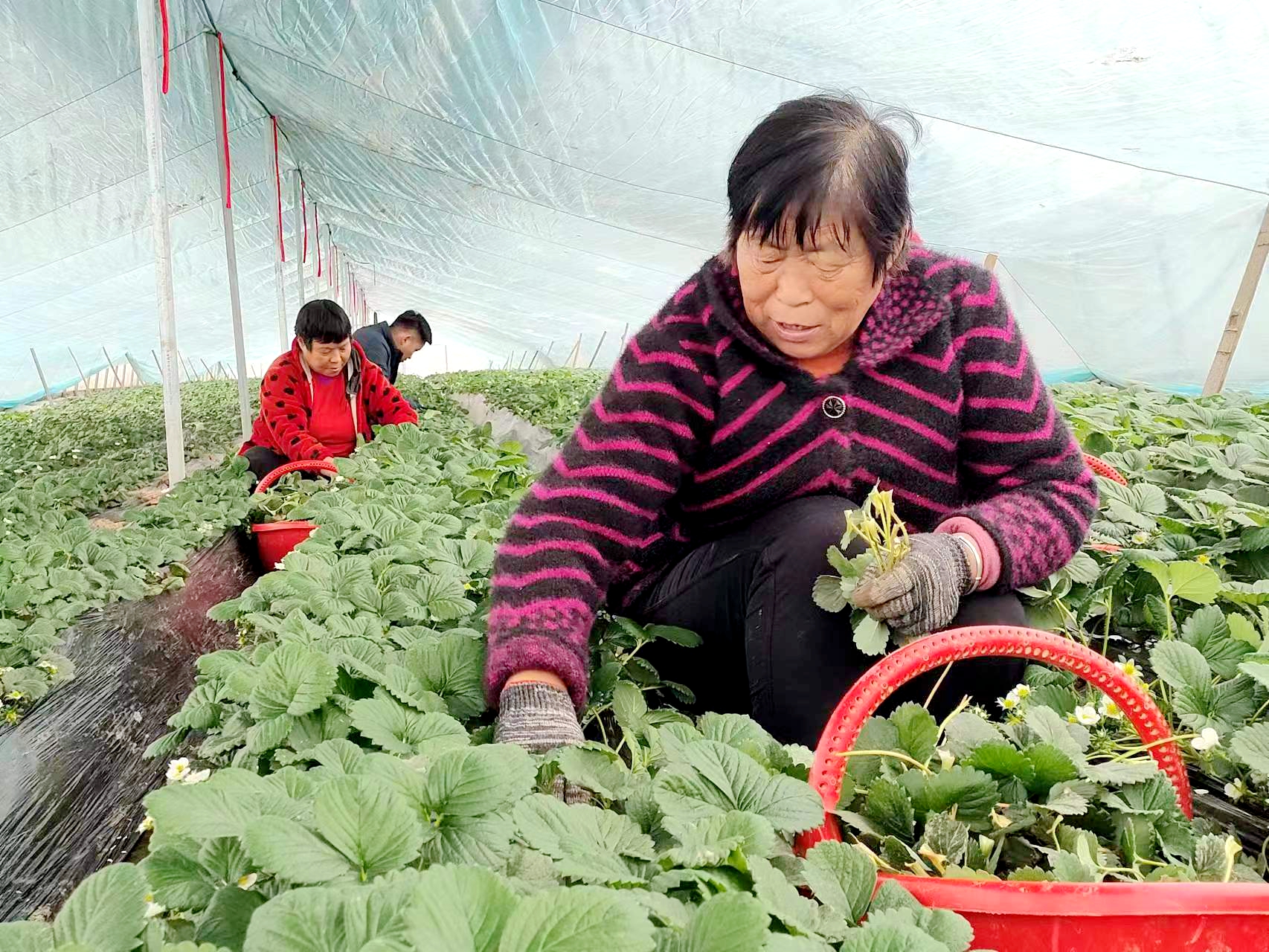 “自從這里開始種草莓,我就來這里打工了,已經(jīng)干了3年,這兒離家近,顧家掙錢兩不誤。”楊湖口鎮(zhèn)水牛張村脫貧監(jiān)測戶劉素華負(fù)責(zé)草莓園日常管護(hù)工作,對(duì)于這份工作她感到十分滿意。