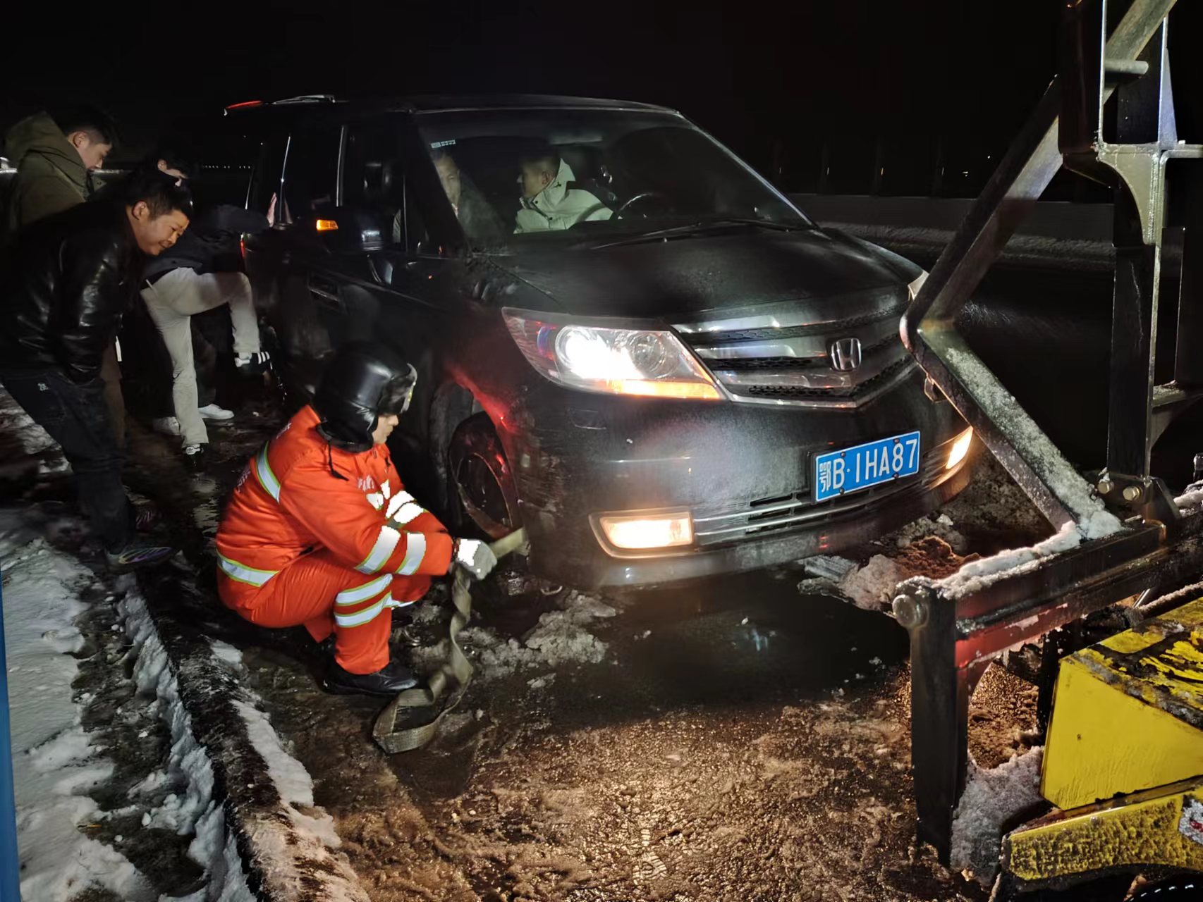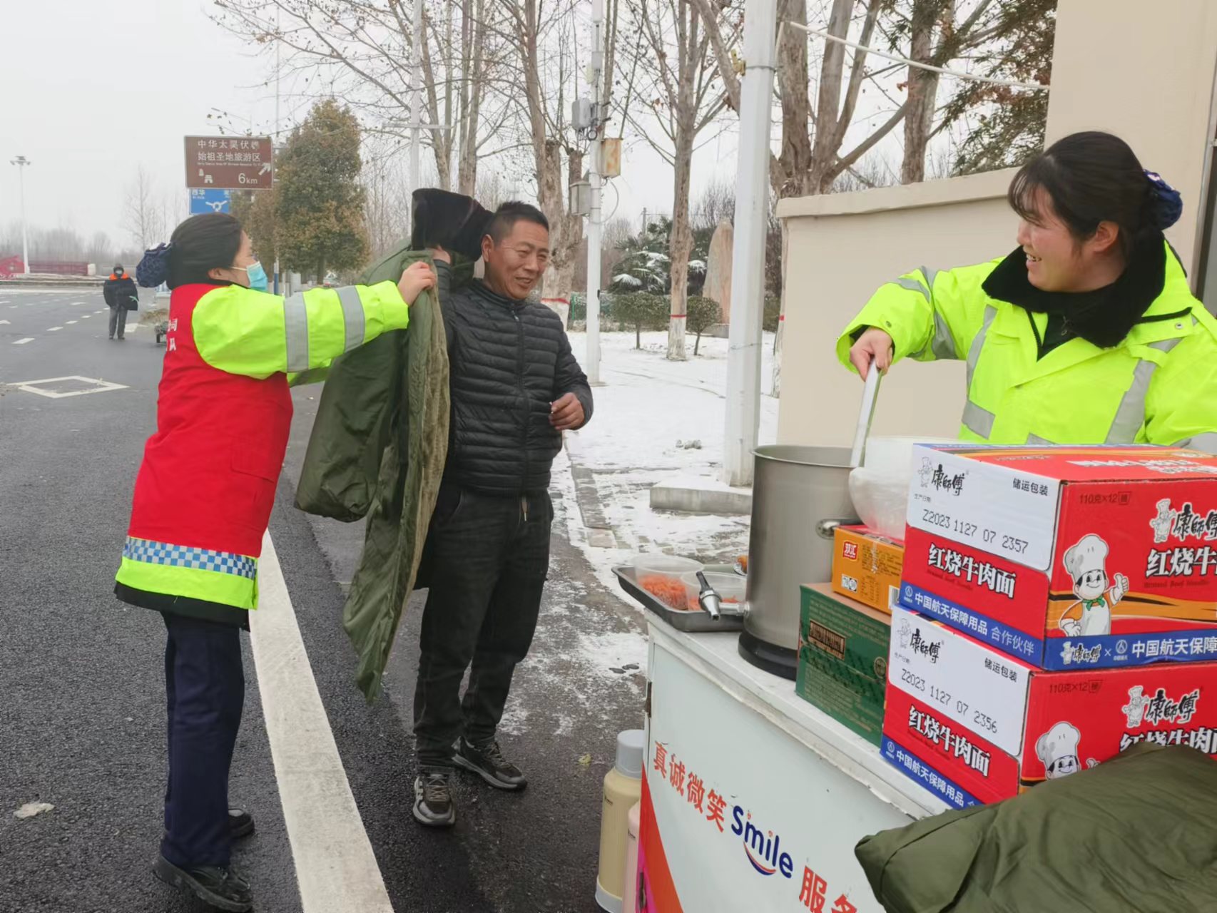 開展“情滿旅途、暖心春運(yùn)”活動,實(shí)行全員駐站,黨員干部下沉一線、靠前指揮;組建黨員突擊隊,設(shè)立黨員先鋒崗、志愿服務(wù)臺,開展志愿服務(wù),儲備棉大衣2000件、瓶裝水1000件、方便面1200箱、火腿腸500箱、熱水壺500個等應(yīng)急物資,為司乘提供熱水、維修工具、路況指引、充電器、救助司乘,開辟生命綠色通道,巡邏車開道與時間賽跑,緊急護(hù)送危重病人,打通生命救援通道,確保司乘人員“不凍著、不餓著、不滯留”。
