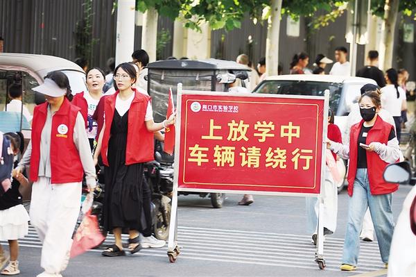 我市中小學(xué)校組織家長志愿者成立“護(hù)學(xué)崗”,每日上下學(xué)高峰時(shí)段協(xié)同交警、教師維持秩序。