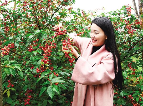 丁志情直播助農(nóng)賣(mài)櫻桃。