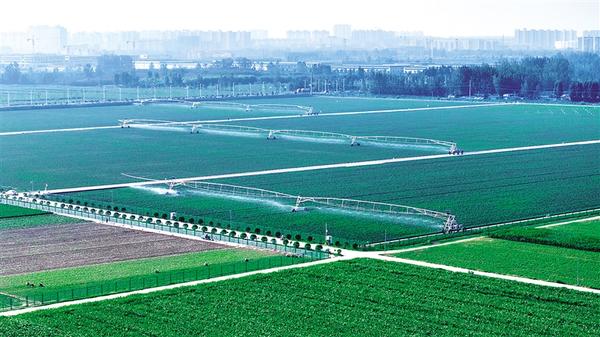 7月18日,在扶溝縣城郊鄉(xiāng)高標(biāo)準(zhǔn)農(nóng)田里,大型移動(dòng)灌溉設(shè)備正在為農(nóng)作物澆水。日前,扶溝縣掀起了以抗旱澆水、除草施肥、病蟲(chóng)害防治為主的農(nóng)作物夏管工作,為秋糧豐收奠定堅(jiān)實(shí)基礎(chǔ)。黃金峰 攝
