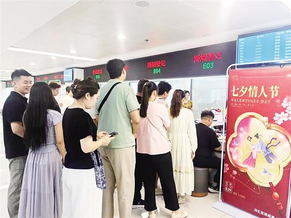 近年來(lái),隨著人們對(duì)傳統(tǒng)節(jié)日和文化的重視,像七夕節(jié)這樣富有文化內(nèi)涵的傳統(tǒng)節(jié)日,成為新人辦理結(jié)婚登記的熱門選擇。此外,因諧音寓意美好而備受青睞的“520”“521”等“數(shù)字節(jié)日”,也保持著較高的結(jié)婚登記熱度。為積極應(yīng)對(duì)此次結(jié)婚登記高峰,確保每對(duì)新人都能高效、便捷、順利地完成結(jié)婚登記,川匯區(qū)民政局婚姻登記處提前制訂了工作預(yù)案。
