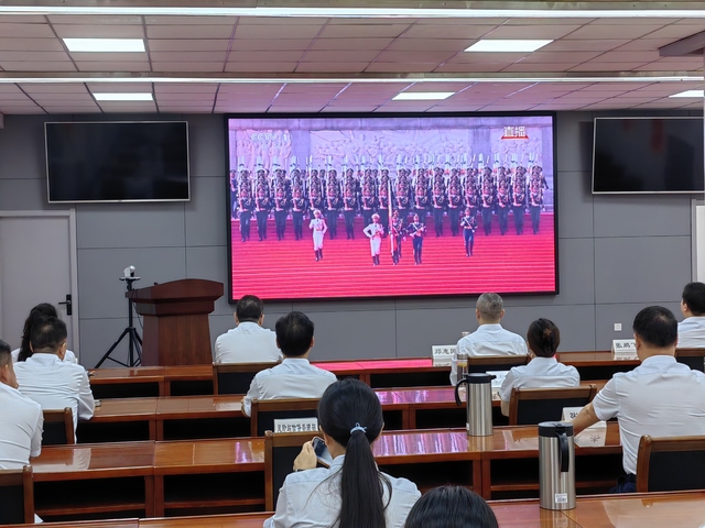 收看過程中,大家心情澎湃,感慨萬千?,F(xiàn)場氣氛莊重而熱烈,大家全神貫注,聆聽習(xí)近平總書記重要講話,滿懷激動與自豪的觀看閱兵儀式的全過程。當(dāng)威武雄壯的三軍儀仗隊邁著鏗鏘有力的步伐率先通過天安門廣場時,當(dāng)一個個裝備方隊展示著彰顯國家實力的現(xiàn)代化尖端武器時,當(dāng)戰(zhàn)機(jī)梯隊以恢宏陣勢呼嘯掠過蒼穹時,大家內(nèi)心迸發(fā)出由衷的贊嘆,為祖國日益強(qiáng)盛而自豪。