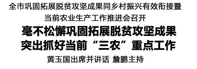 本報(bào)訊(記者 王艷) 11月10日,全市鞏固拓展脫貧攻堅(jiān)成果同鄉(xiāng)村振興有效銜接暨當(dāng)前農(nóng)業(yè)生產(chǎn)工作推進(jìn)會(huì)召開(kāi),對(duì)鞏固拓展脫貧攻堅(jiān)成果、抓好當(dāng)前農(nóng)業(yè)生產(chǎn)工作進(jìn)行再動(dòng)員再部署。市委書(shū)記黃玉國(guó)出席并講話。市長(zhǎng)詹鵬主持。