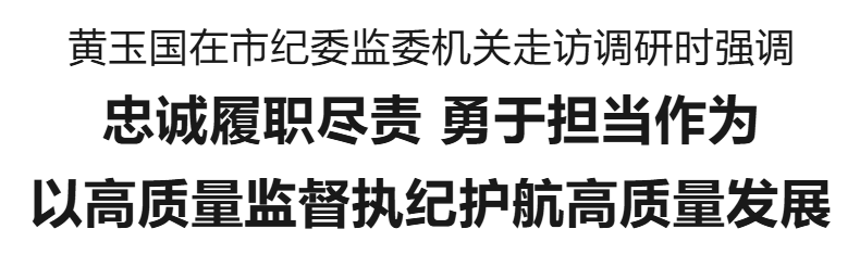 在市紀(jì)委監(jiān)委機(jī)關(guān),黃玉國(guó)先后到宣傳部、黨風(fēng)政風(fēng)監(jiān)督室了解相關(guān)工作開展情況。隨后,黃玉國(guó)與紀(jì)檢監(jiān)察干部座談交流,聽取全市紀(jì)檢監(jiān)察工作以及群眾身邊不正之風(fēng)和腐敗問題集中整治等重點(diǎn)工作情況匯報(bào),對(duì)全市紀(jì)檢監(jiān)察工作給予充分肯定。他指出,近年來(lái),市紀(jì)委監(jiān)委認(rèn)真貫徹落實(shí)黨中央決策部署和省委、市委工作要求,服務(wù)大局有作為,辦案質(zhì)效有提升,集中整治有力度,巡察工作有成效,自身建設(shè)有舉措,各項(xiàng)工作取得扎實(shí)進(jìn)展。