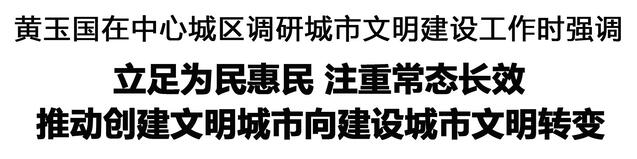 調研中,黃玉國強調,從創(chuàng)建文明城市到建設城市文明,是工作理念的轉變,也是工作實踐的深化拓展。要更加注重常態(tài)長效,堅持融入日常、抓在經(jīng)常,強化機制保障,鞏固拓展文明城市創(chuàng)建成果。要更加注重精細治理,強化問題導向,下足“繡花功夫”,提升網(wǎng)格化管理服務質效,讓群眾生活更方便、更舒心。要更加注重成風化人,大力培育和踐行社會主義核心價值觀,加強教育引導和典型選樹,堅持法治和德治相結合,弘揚崇德向善的文明風尚,不斷提升市民文明素養(yǎng),讓文明內化于心、外化于行。要更加注重全民參與,堅持問計于民、問需于民、問效于民,搭建參與平臺,凝聚多元合力,營造共建共治共享的良好氛圍。
