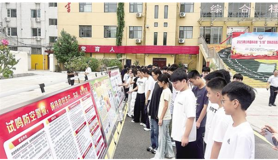 “國防動員九一八警報試鳴疏散演練,現(xiàn)在開始!”9月15日9時30分,周口市第十九初級中學(xué)校園內(nèi),隨著指揮長的指令下達(dá),“嗚——”的防空警報聲驟然劃破晴空。
