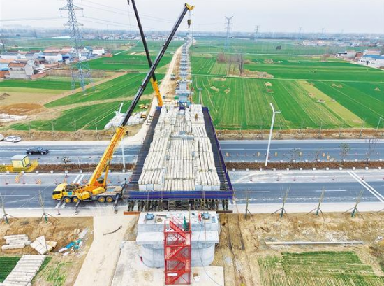 3月18日,在跨寧洛高速特大橋連續(xù)梁施工現(xiàn)場(chǎng),30余名工人正在進(jìn)行連續(xù)梁的鋼筋焊接和混凝土澆筑施工。