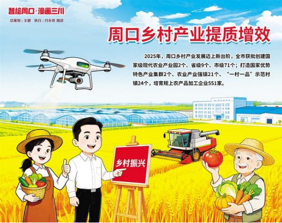 2025年,周口鄉(xiāng)村產(chǎn)業(yè)發(fā)展邁上新臺階,全市獲批創(chuàng)建國家級現(xiàn)代農(nóng)業(yè)產(chǎn)業(yè)園2個、省級9個、市級71個,形成“國家級引領(lǐng)、省級支撐、市縣級補(bǔ)充”的梯次發(fā)展格局。打造國家優(yōu)勢特色產(chǎn)業(yè)集群2個、農(nóng)業(yè)產(chǎn)業(yè)強(qiáng)鎮(zhèn)21個、“一村一品”示范村鎮(zhèn)24個,培育規(guī)上農(nóng)產(chǎn)品加工企業(yè)551家,形成以益海糧油、金丹乳酸、雪榮面粉為龍頭的糧食加工產(chǎn)業(yè)集群。