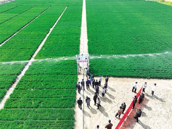 設(shè)施農(nóng)業(yè)看泛區(qū)。近日,黃泛區(qū)農(nóng)場(chǎng)一企業(yè)自主研發(fā)的小型自走式澆地機(jī)備受種植大戶關(guān)注。