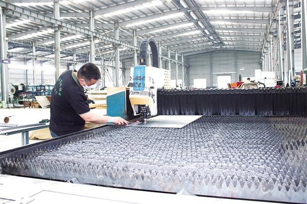 日前,在位于太康縣開發(fā)區(qū)的河南銀星畜牧設(shè)備有限公司生產(chǎn)車間,工人對鋼板進(jìn)行切割作業(yè)。