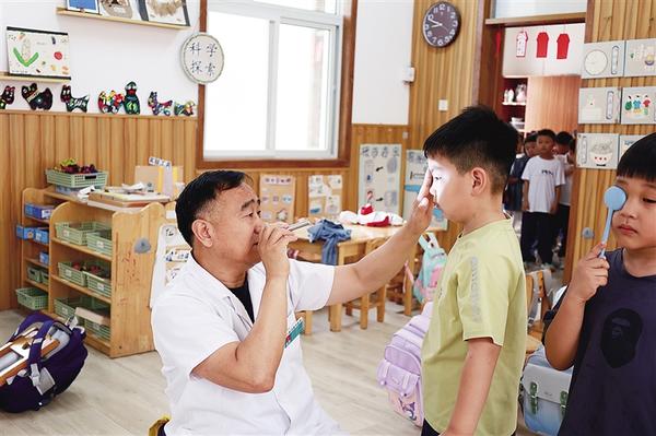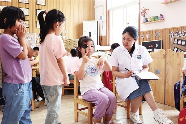 5月19日,扶溝縣中醫(yī)院眼科的醫(yī)護(hù)人員在扶溝縣直幼兒園為小朋友檢查視力。近日,為迎接即將到來的第30個全國“愛眼日”,扶溝縣多家幼兒園開展“愛眼護(hù)眼從小做起”主題活動,邀請醫(yī)務(wù)人員到校講解眼科知識和用眼衛(wèi)生常識,并為小朋友進(jìn)行視力檢查,引導(dǎo)其養(yǎng)成正確用眼習(xí)慣。