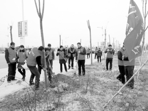 3月5日,扶溝縣人大志愿者來到縣人民公園植樹、拾垃圾,以實際行動營造文明新風(fēng)。李會平 攝