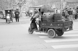 圖③ 在八一大道與七一路交叉口,一輛三輪車無視紅綠燈橫沖直闖。
