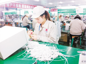 昨日,在三星手機(jī)耳機(jī)供應(yīng)商日立亞電子淮陽有限公司生產(chǎn)車間,工人們正在生產(chǎn)線上忙碌著。淮陽縣近年來積極實(shí)施“工業(yè)強(qiáng)縣、旅游突破、城鄉(xiāng)統(tǒng)籌、四化同步”發(fā)展戰(zhàn)略,不斷調(diào)整工業(yè)產(chǎn)業(yè)結(jié)構(gòu),增加企業(yè)科技含量,以提升產(chǎn)品質(zhì)量和市場(chǎng)競(jìng)爭(zhēng)力,促進(jìn)經(jīng)濟(jì)轉(zhuǎn)型升級(jí)。(記者 侯俊豫 攝)