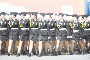 ②5月9日,在俄羅斯首都莫斯科紅場,蘇沃洛夫少年軍校方陣行進在閱兵式上。