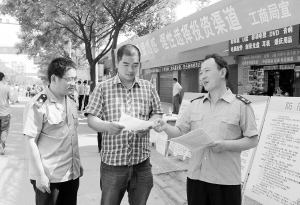 5月16日上午,扶溝縣工商人員向過往市民講解非法集資的危害。當(dāng)日,該縣處置非法集資領(lǐng)導(dǎo)組在縣城桐丘路舉辦打擊非法集資現(xiàn)場宣傳教育活動,各參加單位通過發(fā)放資料、現(xiàn)場咨詢等形式告知廣大市民拒絕參與非法集資。盧付昌 攝