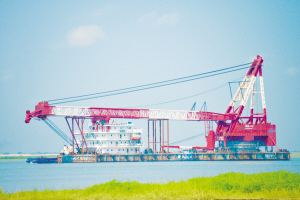 中鐵大橋局千噸起重船抵達(dá)孟加拉國(guó) 這是5月20日在孟加拉國(guó)帕德瑪大橋項(xiàng)目施工區(qū)域拍攝的中鐵大橋局千噸起重船。經(jīng)歷一個(gè)多月的海上航行,從青島起航的中鐵大橋局“瑞航05”起重船于5月19日抵達(dá)孟加拉國(guó)帕德瑪大橋施工區(qū),為大橋建設(shè)提供重要保障。新華社發(fā)