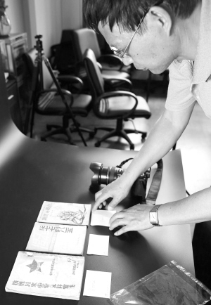 5月26日,上海群眾藝術館的工作人員在為市民提供的抗戰(zhàn)題材收藏品進行造冊登記。