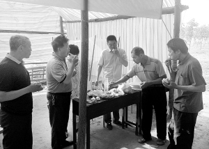 7:00:趙長領(lǐng)的愛人照例給干部們送來了饅頭、涼拌黃瓜、蒜泥茄子、幾根蔥、兩朵大蒜,這就是鎮(zhèn)村干部們的早飯。