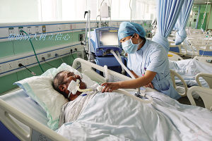 當(dāng)然,護(hù)理工作并非一帆風(fēng)順。眾所周知,ICU收治的都是重癥患者,患者大多數(shù)都有精神障礙,譫妄、昏迷、煩躁不安等狀況很常見(jiàn),這就需要護(hù)士們充滿耐心和愛(ài)心。張衛(wèi)華以實(shí)際行動(dòng)詮釋人間大愛(ài)。2014年8月,科室里來(lái)了一名Ⅱ級(jí)肝性腦病的男性患者,已經(jīng)精神錯(cuò)亂且不認(rèn)人,行為非常危險(xiǎn)。由于該病不能使用鎮(zhèn)靜藥物,當(dāng)責(zé)任護(hù)士靠近患者時(shí),患者拿起床頭柜上的一個(gè)玻璃瓶向護(hù)士砸去。作為護(hù)士長(zhǎng)的張衛(wèi)華見(jiàn)此情景,臨危不懼,用自己的身軀保護(hù)責(zé)任護(hù)士。只聽(tīng)見(jiàn)啪的一聲,鮮血順著她的臉頰流了下來(lái),可她還是慢慢走向那名患者,輕聲向他解釋情況以安撫其情緒?;颊叩那榫w漸漸地穩(wěn)定下來(lái),她才去處理傷口,并輕松地說(shuō):“只要沒(méi)傷著病人就好?!庇幸淮?,科室里來(lái)了一名心梗住院的老人,老人的孩子都在外地,得知老人生病住院也沒(méi)趕回來(lái)照顧,甚至連一句問(wèn)候都沒(méi)有。老人除了要忍受著病痛的折磨,還要忍受對(duì)孩子們的思念。張衛(wèi)華見(jiàn)此情景,非常心疼,為安慰老人,上班期間她都會(huì)去陪老人聊天,哄老人開(kāi)心。老人吵著不舒服的時(shí)候,張衛(wèi)華用藥緩解,同時(shí)耐心安撫老人。晚上老人因?yàn)楹⒆拥氖虑椋瑫?huì)像一個(gè)小孩兒一樣哭泣不止,張衛(wèi)華心疼地陪在老人身邊,一遍又一遍地安慰說(shuō):“別害怕,我在您身邊,我就是您的女兒?!?/P>