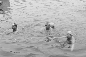 伸伸腰,扭扭腿……下水前,大家都要活動筋骨,避免發(fā)生意外。根據(jù)分組,大家按照次序來到河邊,聽到口令后,一個個魚躍河中。14歲的張毅來自許昌代表隊(duì),賽后他激動地對記者說:“我很久之前就開始接觸游泳了,但是冬泳剛剛練習(xí)了3年,參加這樣的比賽很開心?!庇浾卟稍L發(fā)現(xiàn),冬泳愛好者比賽結(jié)束后很少關(guān)心自己的成績,他們說得最多的是“爽”。一位冬泳愛好者告訴記者,比賽成績不重要,重要的是這項(xiàng)運(yùn)動能培養(yǎng)人的意志力以及使人保持開朗樂觀的生活態(tài)度,這才是他所追求的。